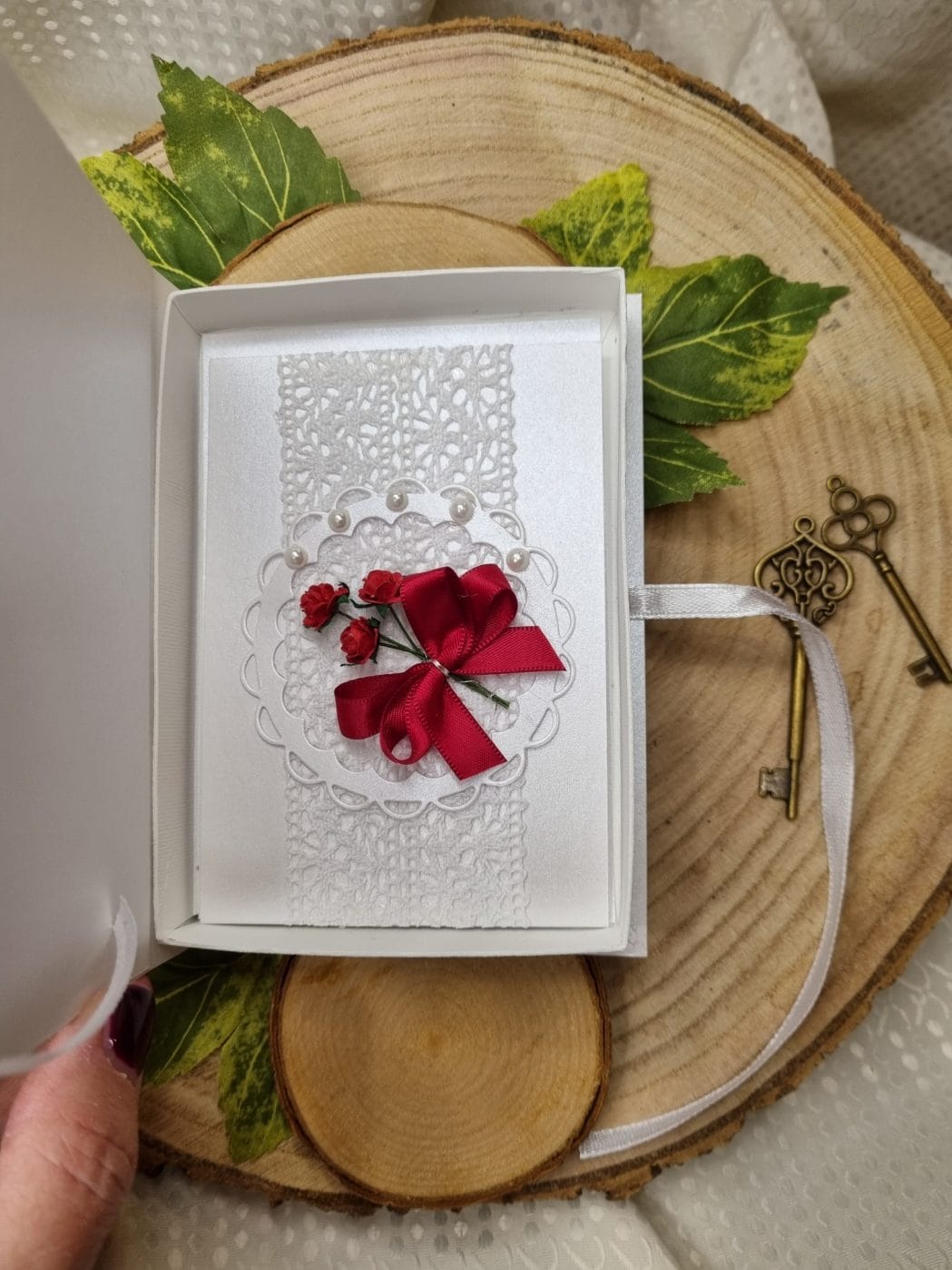 Izberite škatlico, ki se vam zdi najprimernejša za dogodek, za katerega boste podarili škatlico. Pod opombe nam lahko sporočite, v kolikor želite, da vam na škatlico dodamo npr. ŠTEVILKO, PRSTANE, KAK KRSTNI SIMBOL, MOTIV BIRME ALI OBHAJILA … Izdelek dajte v košarico in sledite navodilom za nakup v spletni trgovini.