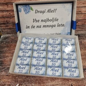 Če iščete darilo s čokoladicami, ki je drugačno, osebno in popolnoma prilagojeno obdarovancu, je naša personalizirana bonboniera s 16 mini čokoladicami popolna izbira. Gre za izdelek, ki združuje sladko pozornost in iskrena sporočila, zato je odlična izbira za obletnico, rojstni dan, valentinovo, božične praznike ali kot presenečenje kar tako – za nekoga, ki vam veliko pomeni.