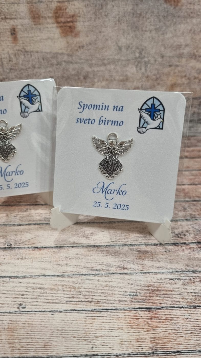 Sveta birma, krst in obhajilo so čudoviti in nepozabni trenutki, ki zaznamujejo pomembne prelomnice v življenju. To so dnevi, ko se zbere družina in prijatelji, da skupaj praznujejo duhovno rast, vero in ljubezen. Ob takšnih priložnostih je popolno darilo tisto, ki nosi simboliko, je trajno in hkrati unikatno. Predstavljamo vam naše čudovito darilo za birmo obesek angelček – elegantno kombinacijo personaliziranega kartončka in obeska v obliki angelčka, ki bo ohranilo spomin na ta poseben dan za vedno.