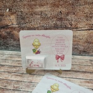 Ko izberete konfete, ki se vam zdi, da je “ujel” vaš pogled, izdelek položite v košarico, v košarici napišite količino, ki jo želite, v opombe pa vas prosim, da napišete ime otroka in datum obhajila.