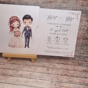 Vsako vabilo je skrbno natisnjeno s profesionalnimi laserskimi tiskalniki, ki zagotavljajo jasnost in bogate barve. S tem poskrbimo, da so vsi detajli – od cvetličnih motivov do animacij ženina in neveste – popolnoma izpopolnjeni.