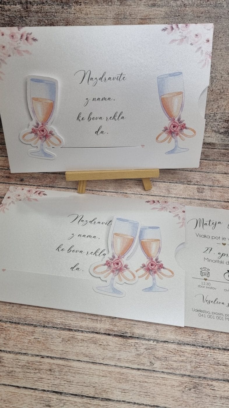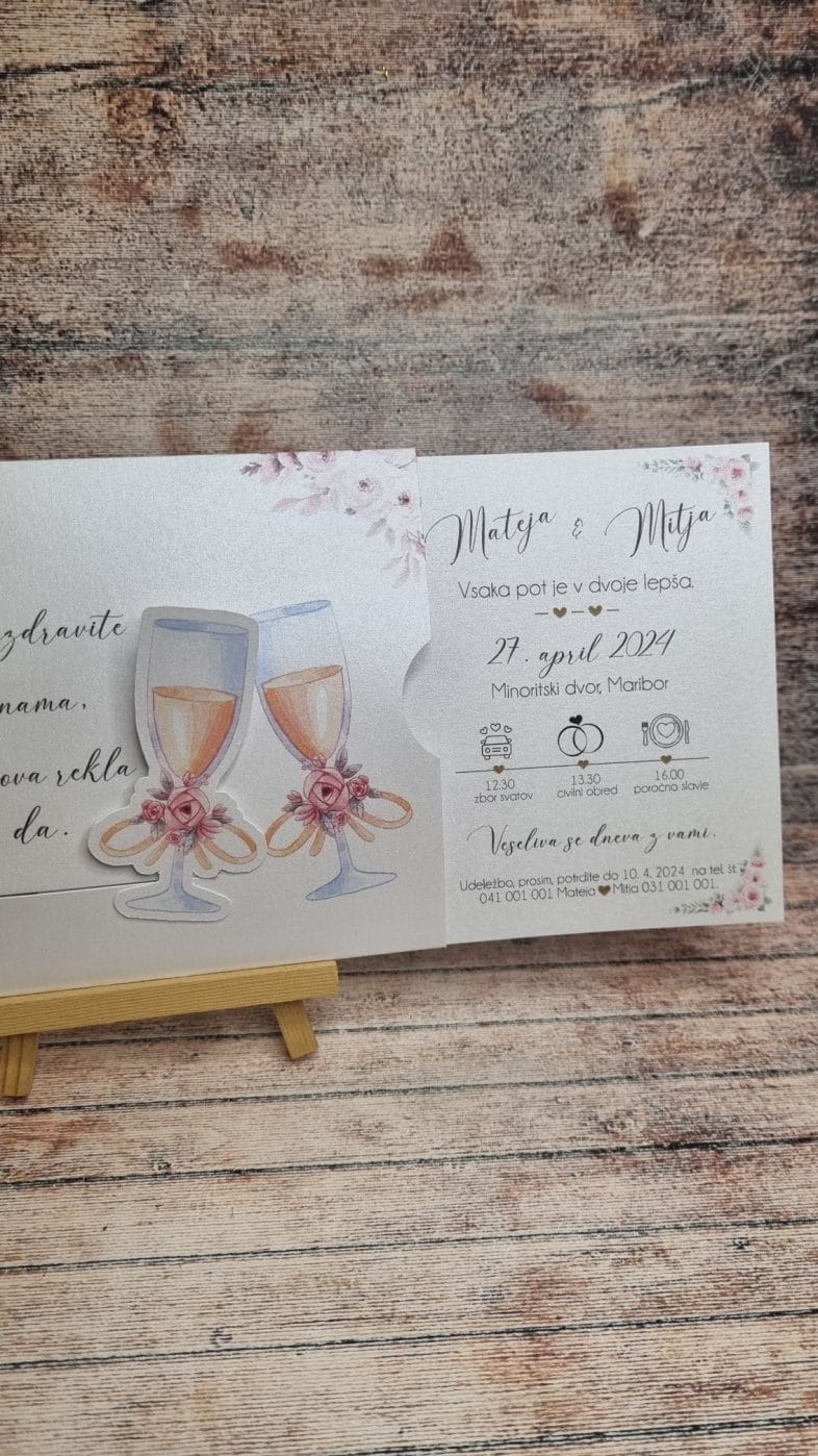 Vsako vabilo je skrbno natisnjeno s profesionalnimi laserskimi tiskalniki, ki zagotavljajo jasnost in bogate barve. S tem poskrbimo, da so vsi detajli – od cvetličnih motivov do animacij ženina in neveste – popolnoma izpopolnjeni.