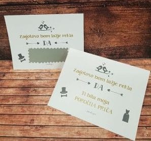 Na karticah so sporočila kot so … Bi se poročila z mano, bi se poročil z mano, postal boš očka, bi bila moja družica, postala bosta babica in dedek, bi bila moja poročna priča…