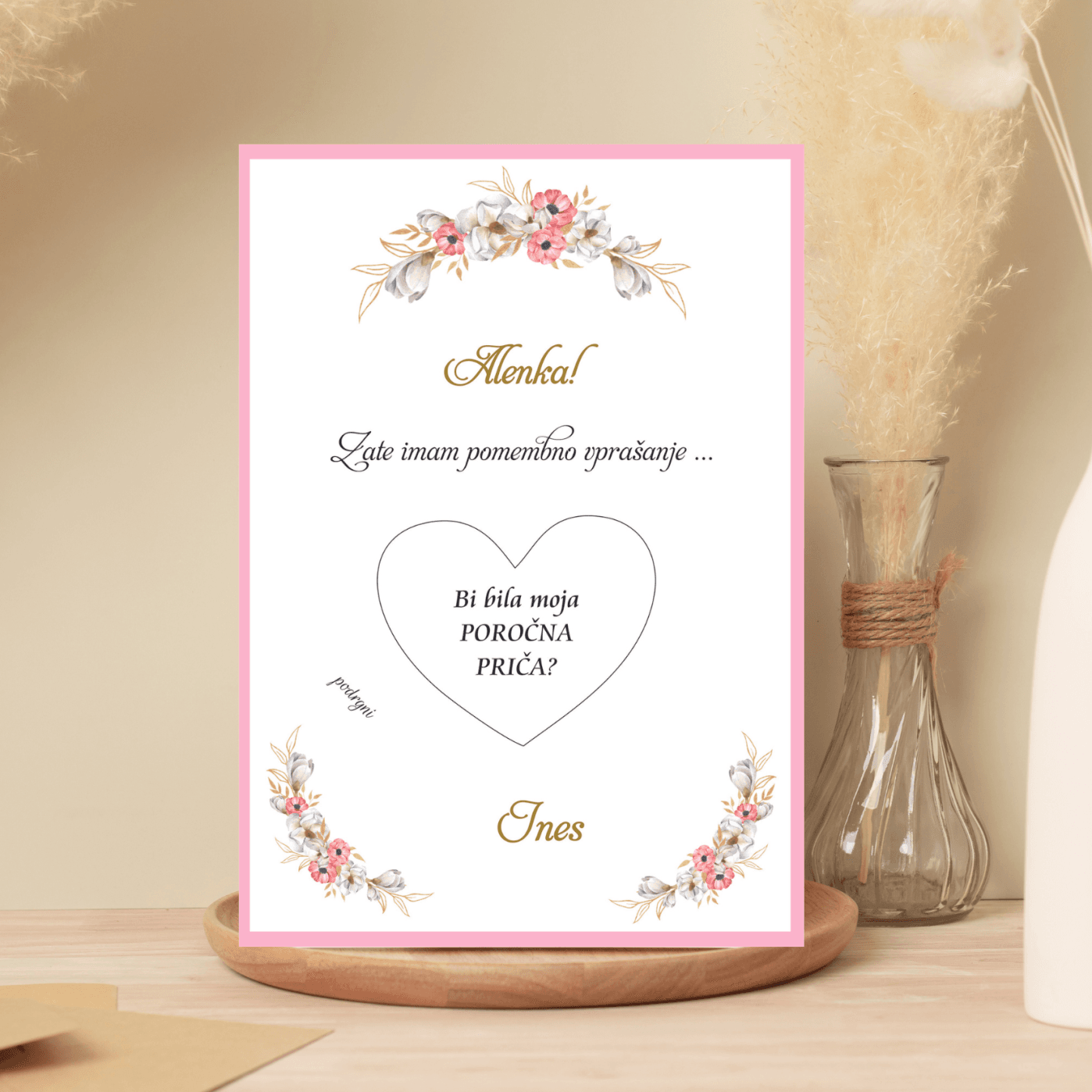 Vstopite v svet nepozabnih trenutkov z našimi karticami presenečenja! Te čarobne kartice so popolna izbira za posebne priložnosti, kot so poroke, krsti in birme. Lahko pa z njimi sporočamo tudi različne pomembne dogodke v življenju. Vsaka kartica je prekrita s posebnim premazom, ki ga lahko spraskate in razkrijete skrivnostno sporočilo. S temi karticami lahko na edinstven način povabite nekoga, da postane vaš krstni ali birmanski boter, ali pa ga prosite, da bi bil vaša poročna priča, družica ali družban. V vsakem odkrivanju se skriva veselje, ki obdarovancu pričara nasmeh na obraz. Ne zamudite priložnosti, da s karticami presenečenja delite to čarobno izkušnjo z najdražjimi!