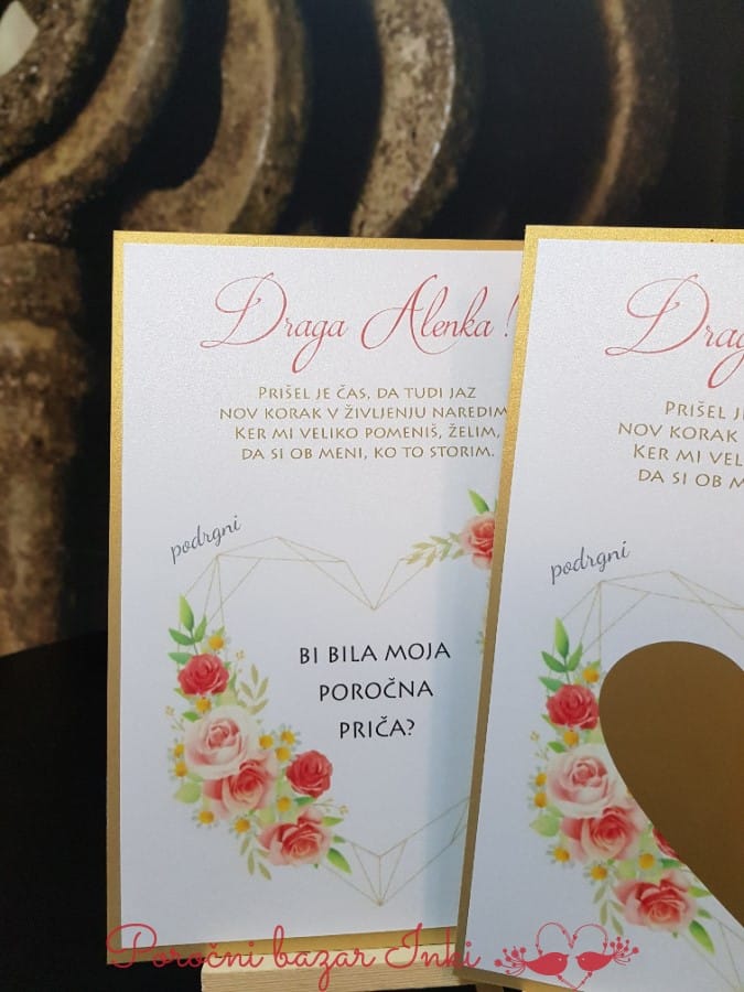 Na karticah so sporočila kot so … Bi se poročila z mano, bi se poročil z mano, postal boš očka, bi bila moja družica, postala bosta babica in dedek, bi bila moja poročna priča…