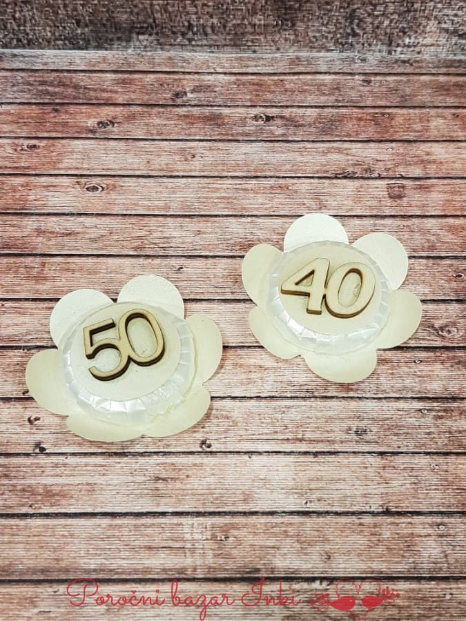 Konfeti za obletnice, ki jih najdete v naši ponudbi so ročno izdelani. Vsak dobi tudi napis s posvetilom, imenom slavljencem in datumom slavja ali rojstnega dne. Ta listek je vštet v ceno. Konfeti za Abrahama in obletnice so primerni tako za ženske, kot tudi moške in brez težav vam prilagodimo barvo in podrobnosti. Pri določenih izdelkih vam lahko napišemo tudi posvetilo. Za podrobne informacije nas lahko pokličete na 041 557 613 ali nam pišete na naš mail info@porocni-bazar.si