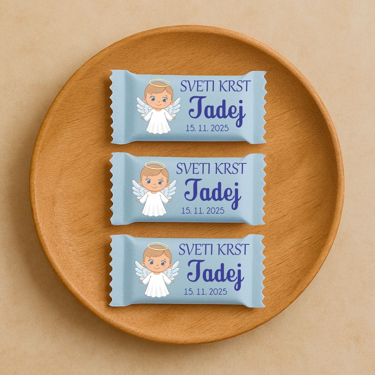 Naše personalizirane krstne čokoladice so oblikovane v nežnem, umirjenem slogu in prilagojene prav temu posebnemu dnevu. Vsaka čokoladica je lahko opremljena z imenom otroka, datumom krsta ali nežnim krstnim motivom, zaradi česar postane čudovit sladki spomin na sveti krst, ki ga gostje z veseljem odnesejo domov.