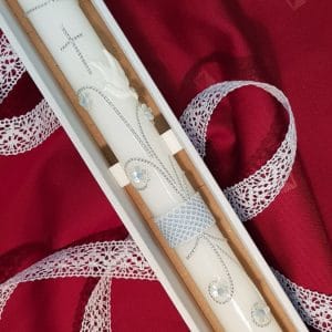 Krstna sveča je del svetega krsta in se uporabi v kombinaciji s krstnim prtom – prtičkom, ki vam jih prav tako ponujamo v naši ponudbi. Pester izbor prtičkov, si lahko ogledate na tej povezavi TUKAJ