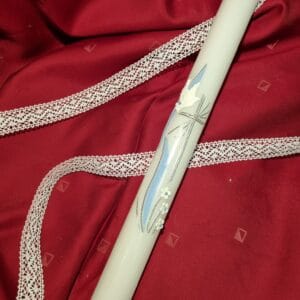 Krstna sveča je del svetega krsta in se uporabi v kombinaciji s krstnim prtom – prtičkom, ki vam jih prav tako ponujamo v naši ponudbi. Pester izbor prtičkov, si lahko ogledate na tej povezavi TUKAJ