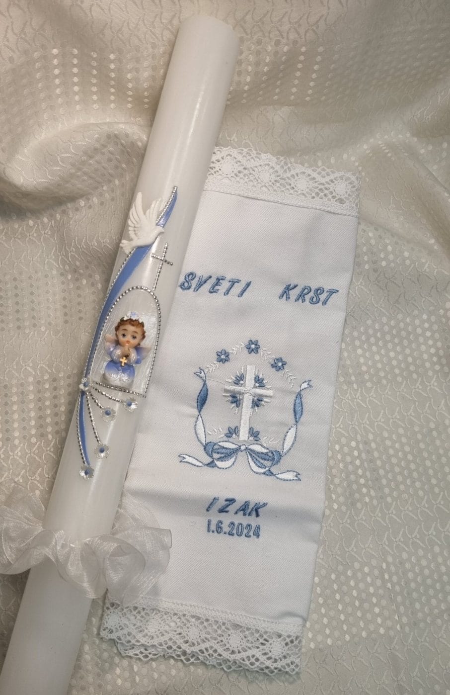 krstni komplet prt in sveča KRSTNI KOMPLET prtiček in sveč...