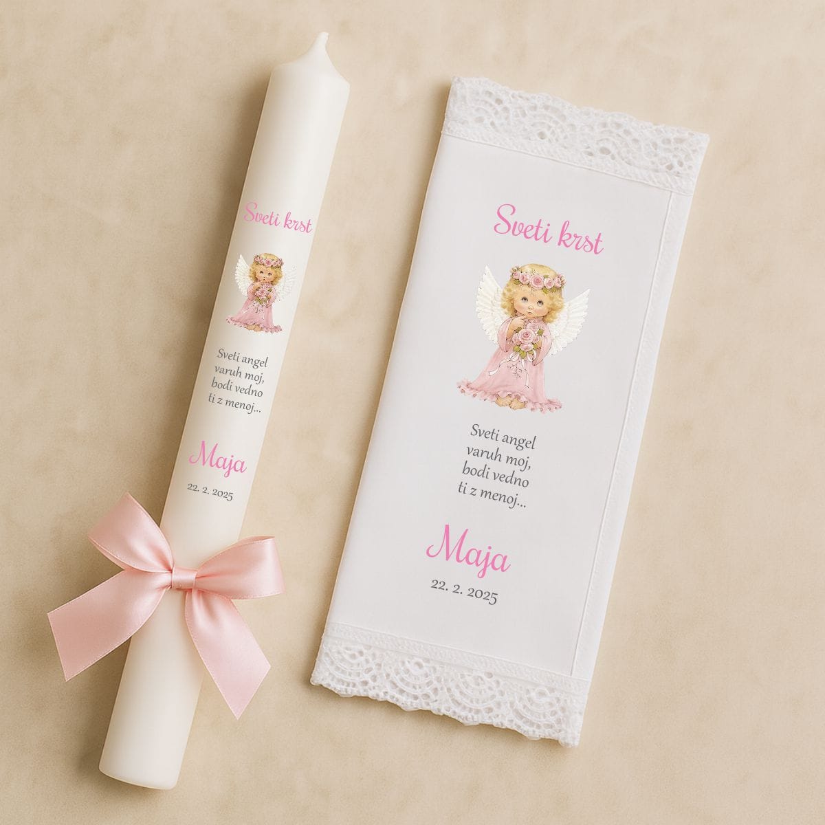 Dobrodošli v naši spletni trgovini, kjer najdete vse potrebno za nepozaben in svet trenutek – sveti krst vašega otroka. Krst je poseben obred, ki zaznamuje vstop otroka v duhovno življenje in je hkrati dogodek, ki poveže družino v simbolu ljubezni, vere in upanja. Za popolno pripravo na krst nudimo izbrano kolekcijo krstnih sveč, ki predstavljajo luč vere, in prtičkov, ki so nepogrešljiv del vsakega krstnega obreda. Poleg posameznih artiklov vam ponujamo tudi čudovite krstne komplete, ki združujejo krstno svečo in prtiček v usklajenem videzu. Popolna kombinacija.