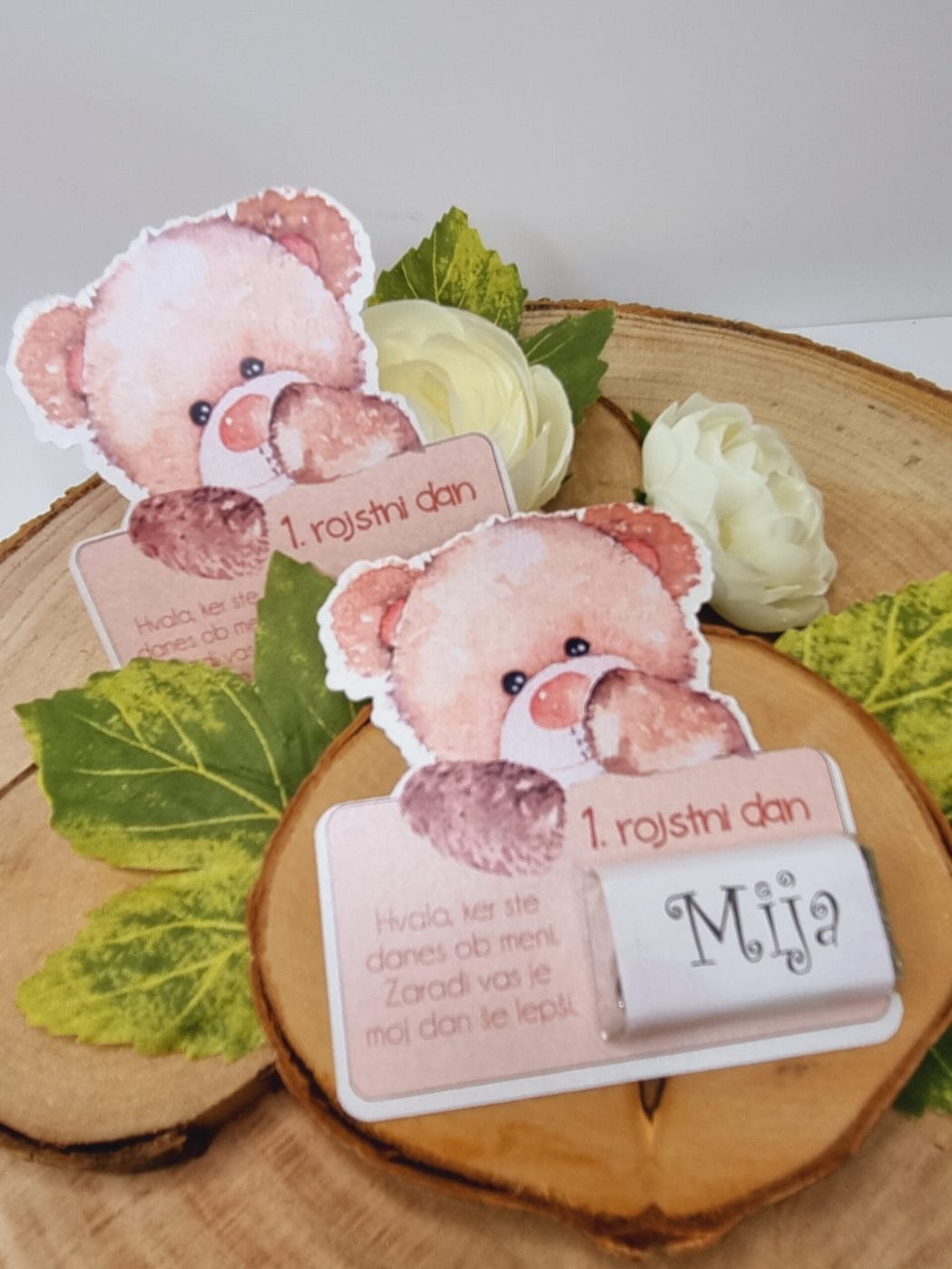 Ker vsa naša darilca za krst pripravljamo sami, so ročno izdelana, unikatna in povsem naš izdelek. Prav zato jih lahko prilagodimo in izdelamo tudi v istem slogu kot krstna vabila, kar omogoča lepo usklajene komplete – vabila in krstni konfeti v enotni podobi. Pogosta izbira naših strank.