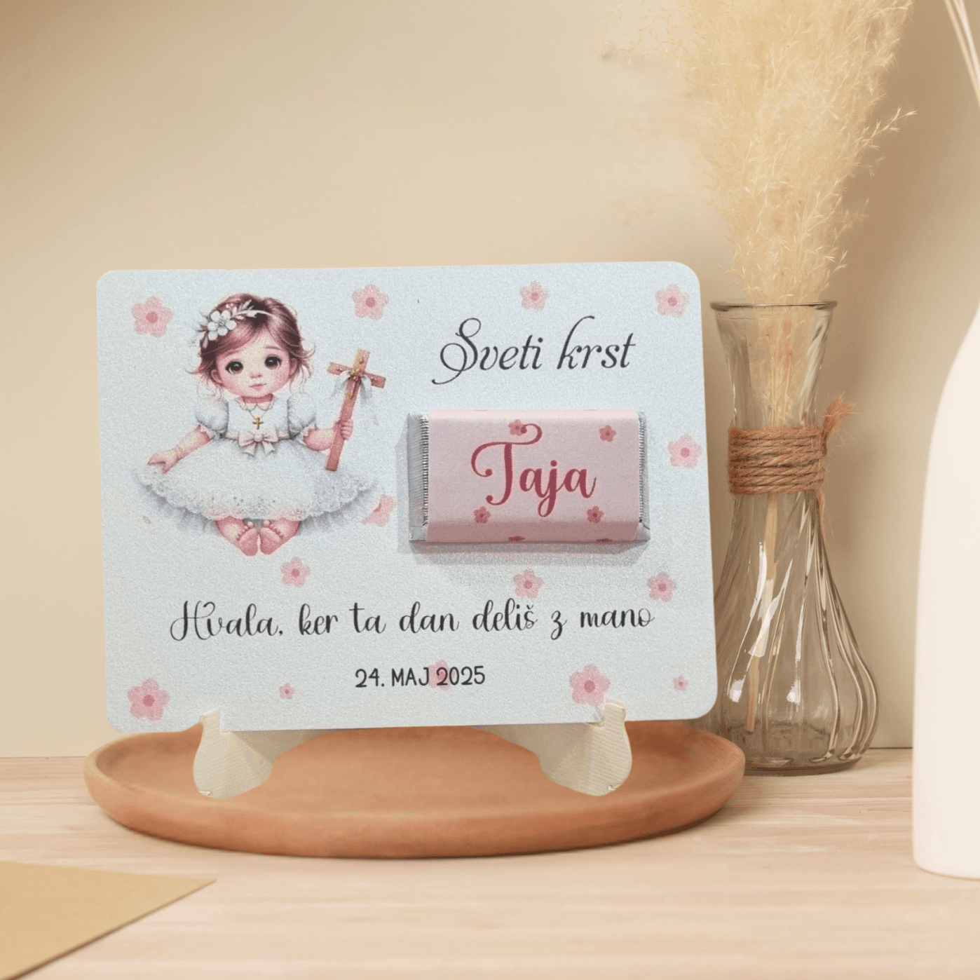 V zadnjem času pa se vse več staršev odloča tudi za personalizirane krstne čokoladice, ki jih vključimo v konfete. Vsaka čokoladica je lahko opremljena z imenom otroka, datumom krsta ali nežnim motivom, povezanim s slavjem, zaradi česar postanejo sladka darilca za krst še posebej osebna in priljubljena med gosti.