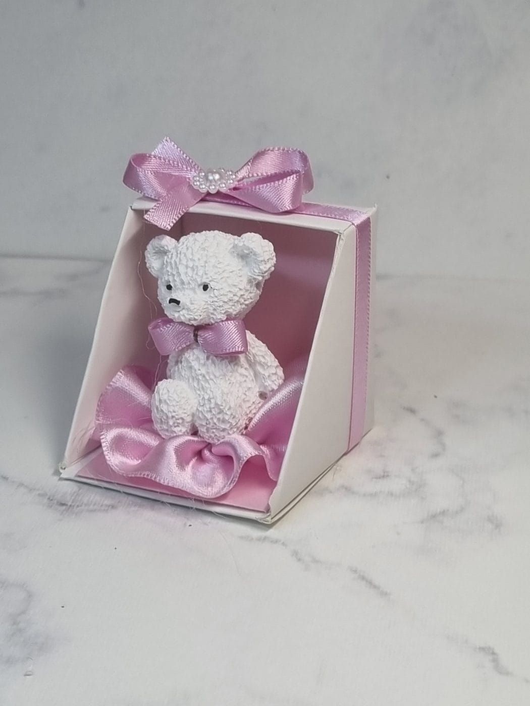 Krstni angelček v škatlici je običajno nameščen v lično darilno embalažo, pogosto dopolnjeno s pentljico ali dekorativnim trakom. Takšna oblika je zelo priljubljena kot darilce za goste ob krstu, saj deluje elegantno in hkrati zaščiti figurico.