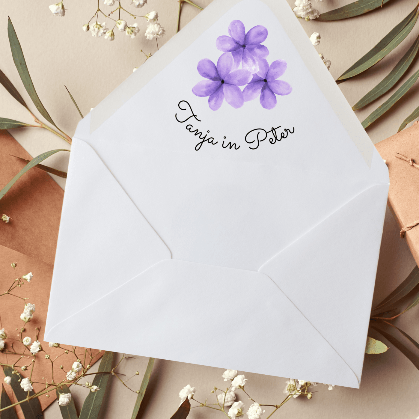 Če si želite osebno prilagojene izkušnje, lahko izberete naše potiskane kuverte za vabila, ki bodo vašemu posebnemu trenutku dodale še več elegance. Ob doplačilu vam ponujamo možnost izbire unikatnih potiskov, ki bodo očarali prejemnike že na prvi pogled. Naj vaša ljubezenska zgodba zasije v vsaki podrobnosti, ki jo bomo s skrbnim potiskom vtisnili na kuverto