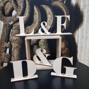 Lesen napis ženin in nevesta je velik cca 18-22 cm in višina črk 4 cm. Napis je lahko iz temnega ali svetlega lesa. Lahko se ga obesi na stol, ali kot dekoracija za na steno. Napis ima luknjice za trakove. Črke so lahko tudi višje, vendar morajo biti pisane, saj se morajo držati skupaj, da lahko napis tudi izrežemo. Napis je lasersko izrezan in trak, je lahko poljubne barve.
