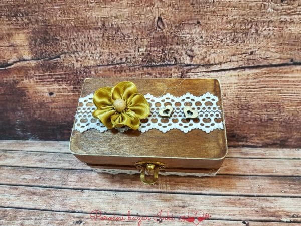 Lesene škatlice za prstane imajo starinski izgled. Škatlice smo umetno postarali oz jih naredili tako, da so kot iz babičine skrinje.