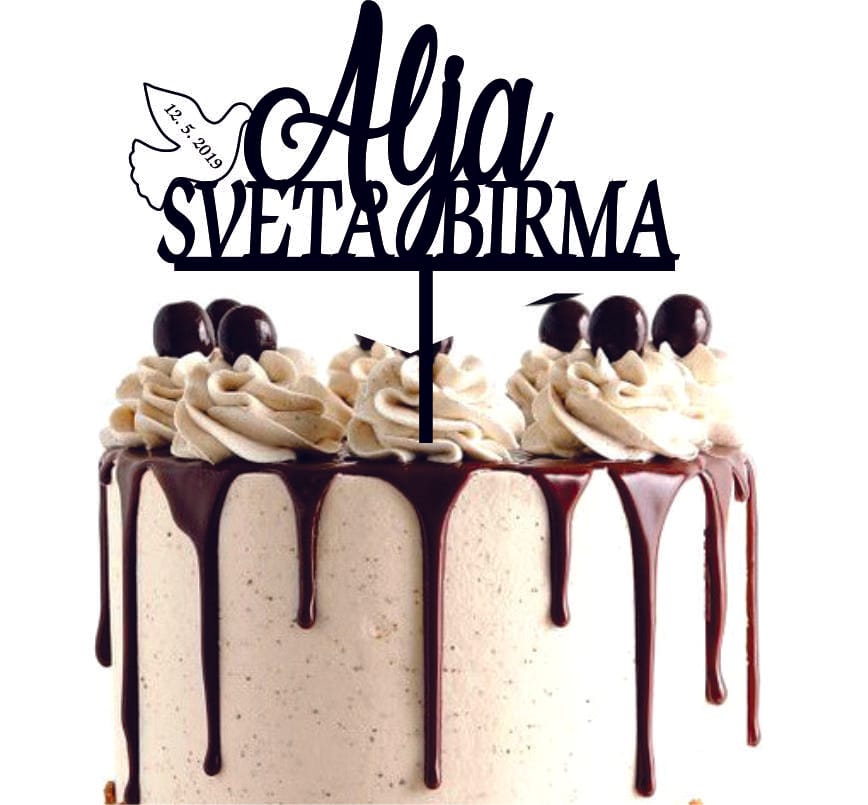 Napis za torto birma, lahko še tako običajno torto, spremeni v pravo kreacijo, saj bo na vrhu krasil in posebej poudaril namen slavja. V ponudbi imamo že v naprej pripravljene napise – številke, črke, splošne napise, razne oblike, lahko pa vam jih izdelamo tudi po vaših željah. Lesene napise lahko tudi poljubno pobarvamo, dodamo bleščice. Napisi iz pleksija pa so lahko tudi v barvah – na en strani so barvni, na drugi pa prosojni.
