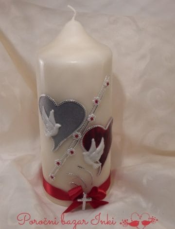 poročna sveča Poročna sveča s srčki v rdeči ...