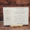 Material: Poročna vabila so izdelana iz trpežnega 250g perl papirja, ki s svojo rahlo bleščečo teksturo doda pridih prestiža in elegance. Izbirate lahko med klasično belo ali krem barvo, ki sta nevtralna in hkrati prefinjena.