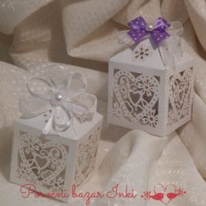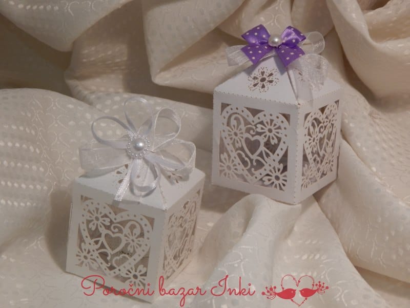 Poročni konfeti ki so škatlice – cena je navedena za prazno škatlico, lahko poljubno tudi napolnimo. Ob naročilu nam lahko pod sporočilo napišete, kaj bi želeli, da vam damo v škatlice ali vsebino izberte pod “IZBERITE VSEBINO ŠKATLICE”