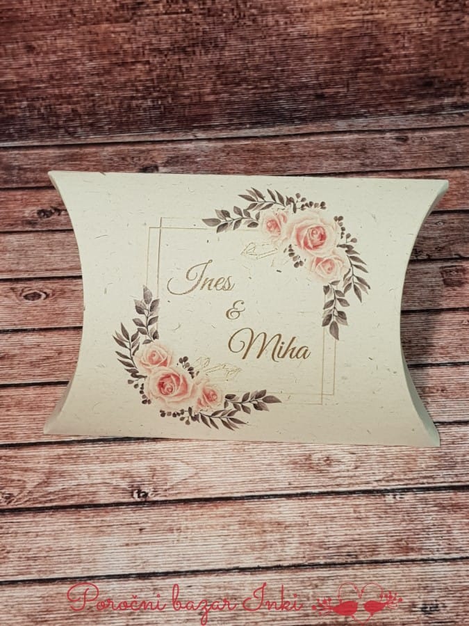 Poročni konfeti  ki so škatlice – cena je navedena za prazno škatlico, lahko poljubno tudi napolnimo. Ob naročilu nam lahko pod sporočilo napišete, kaj bi želeli, da vam damo v škatlice ali vsebino izberte pod “IZBERITE VSEBINO ŠKATLICE”