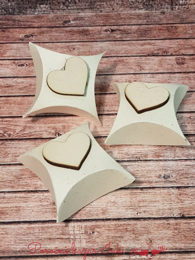 Poročni konfeti  ki so škatlice, so lahko polne ali prazne. Kadar je cena za prazne škatlice in če želite poročne mandlje – bonbone mandlje oblite s sladkorjem, ce doplača 0,60 eur za 5 kom teh malih bonbončkov. Bonbone lahko kupite tudi po 1 KG -pošljite nam povpraševanje na info@porocni-bazar.si