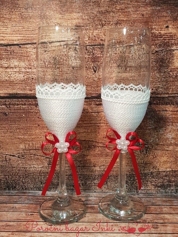 Na vsakem poročnem slavju mladoporočenca nazdravita s svati, spijeta zdravico. Zakaj ne bi tega storila s prav posebnimi unikatnimi in ročno izdelanimi kozarci. To lahko storita iz povsem običajnih kozarcev, lahko pa zdravico začinita s posebnimi poročnimi kozarci.  Poročni kozarci so namenjeni pitju svatovskega vina in zdravici mladoporočencev na poročni zabavi. Kozarca sta na peclju iz stekla in sta zelo elegantna.