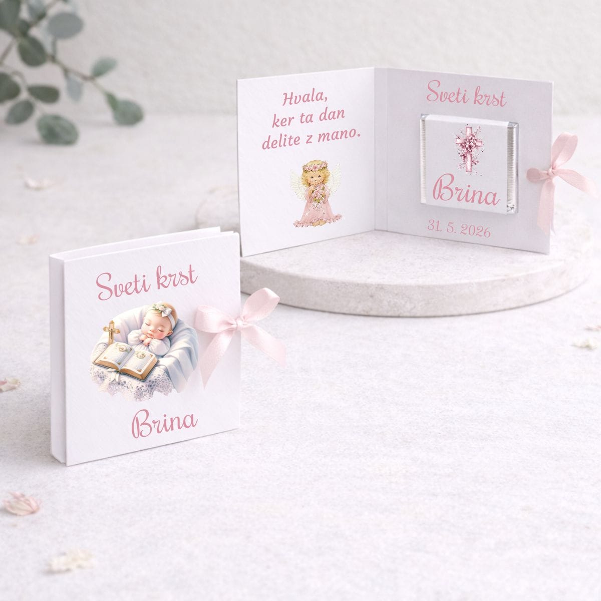 Takšen pristop omogoča, da darilce ni le izdelek, temveč del celostne zgodbe krstnega dne.