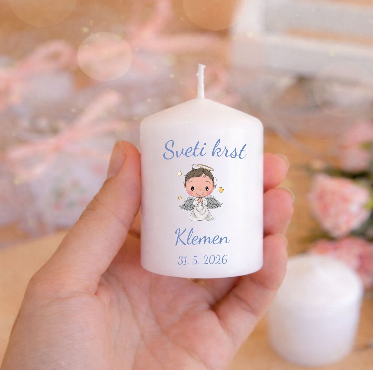 spominska personalizirana mala krstna svečka za darilca Spominsko darilo za krst – per...