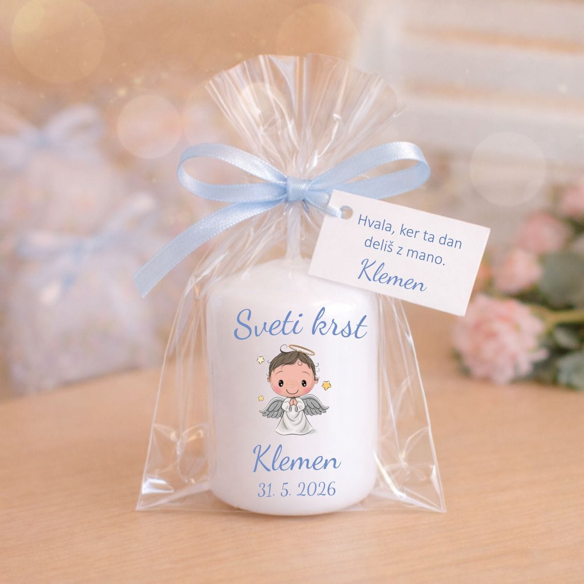 Ob svetem krstu je lepo, da se gostom zahvalimo z drobno, a pomenljivo pozornostjo, najbolje so personalizirana darila za krst. Spominska darilca za krst v obliki malih svečk so nežna in simbolna izbira, ki v sebi nosi globlji pomen ter ostane lep spomin na ta poseben dan. Svečka kot darilo predstavlja svetlobo, toplino in nove začetke, zato je še posebej primerna za obeležitev svetega krsta. Preprosto darilo, ki ostane v spominu.