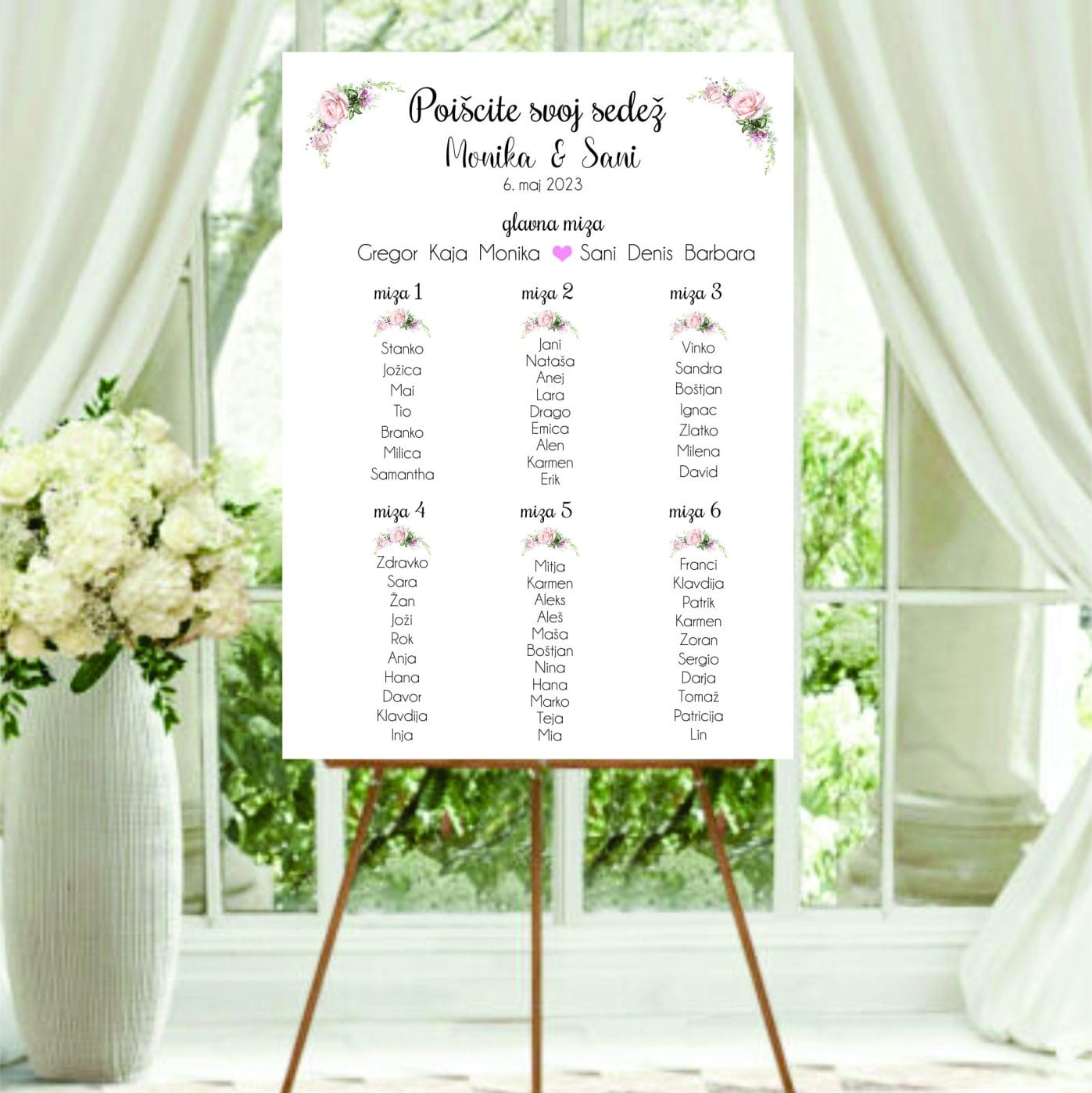Veliko poročnih slavij in zabav je na odprtem in prostor je potrebno nekako urediti. Prav v ta namen imamo na voljo tabla za sedežni reds katerim lahko lepo popestrite prireditveni prostor. Plakati so primerni tako za zunaj, kot tudi za zaprte prostore. Natisnjeni so na trši papir, ki ima trdo podlago, tako, da plakat lahko samostojno stoji. Trda osnova je iz foreksa – plastiki podoben material ali kartona.