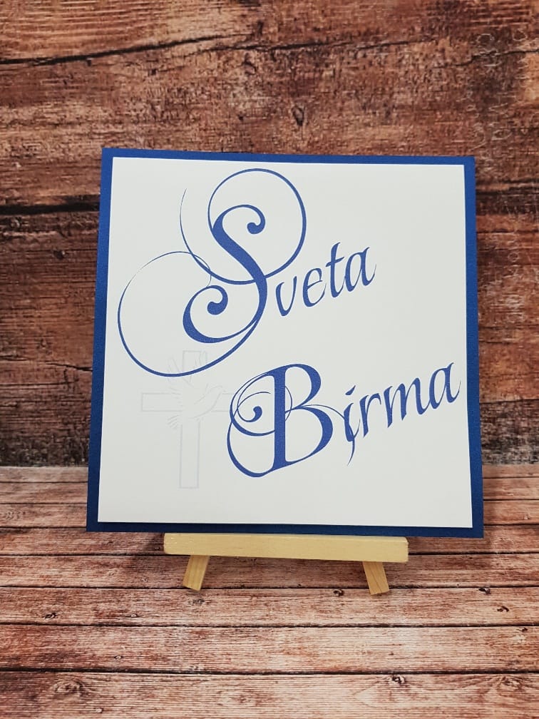 Vabilo za birmo je narejeno iz belega 290g perl papirja. Ima birmanski motiv in minimalistično obliko besedila. Vabilo ima nežen birmanski motiv v modri barvi. Dimenzija vabila je cca 15×15.